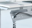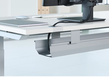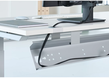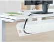 Estetyczny kanał kablowy wykonany z lakierowanej blachy stalowej mieści dużą ilość przewodów, nawet z gniazdkami przedłużaczy. Kanał mocuje się bezpośrednio do blatu biurka.